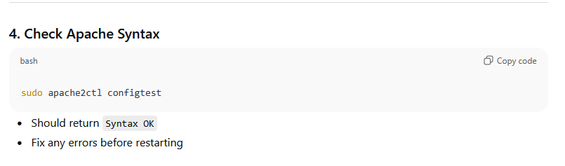 sudo apache2ctl configtest