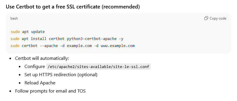 sudo apt install certbot python3-certbot-apache -y