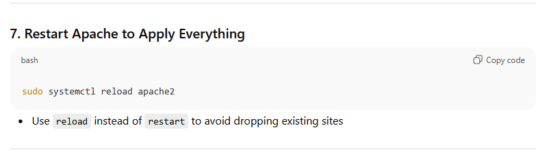 sudo systemctl reload apache2